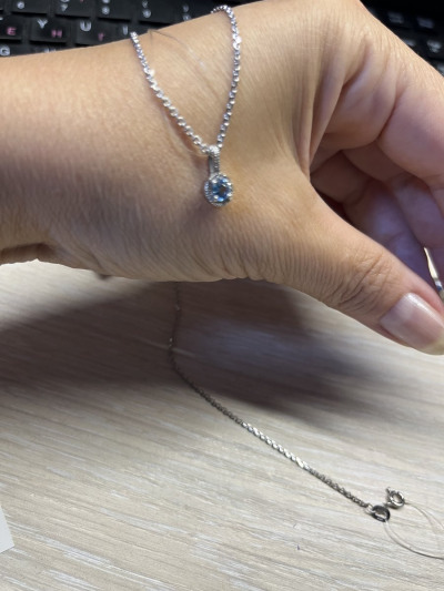 Миниатюрная подвеска с голубым топазом Свисс куплена в комплекте с пусетами. Выбирала между светлым и темным топазом, выбор сделала в пользу голубого. Голубоглазки - это точно Ваш вариант! Очень гармоничный комплект в обрамлении белого золота! Отдельное спасибо менеджеру магазина за помощь с выбором. Рекомендую, спасибо, Санлайт!