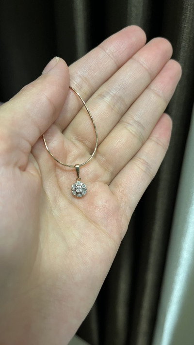 Подвеска с 3 бриллиантами природными, 0.02 карат, огранка круг 57 граней, цвет 3, чистота 6, тип огранки А;