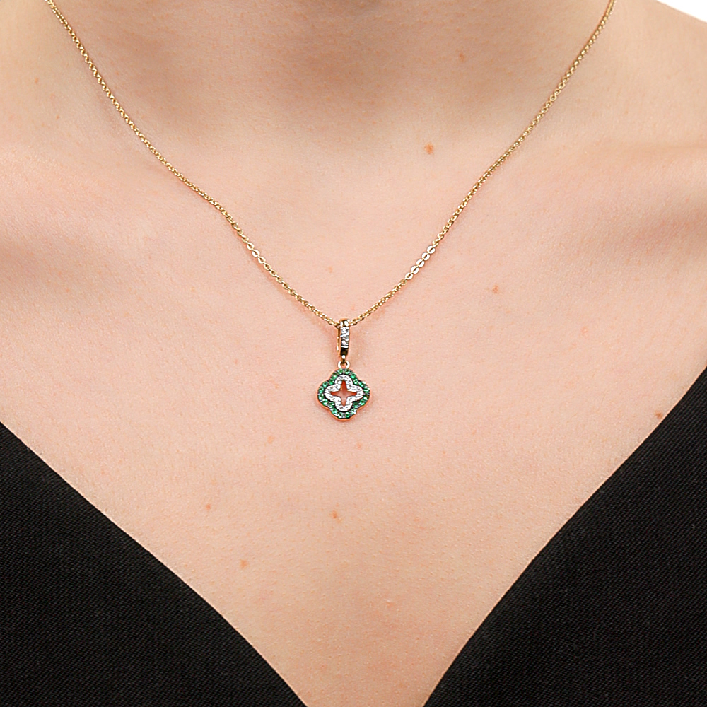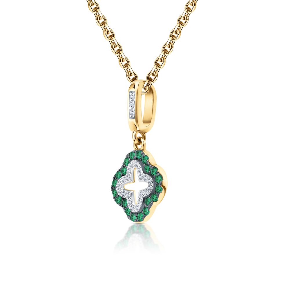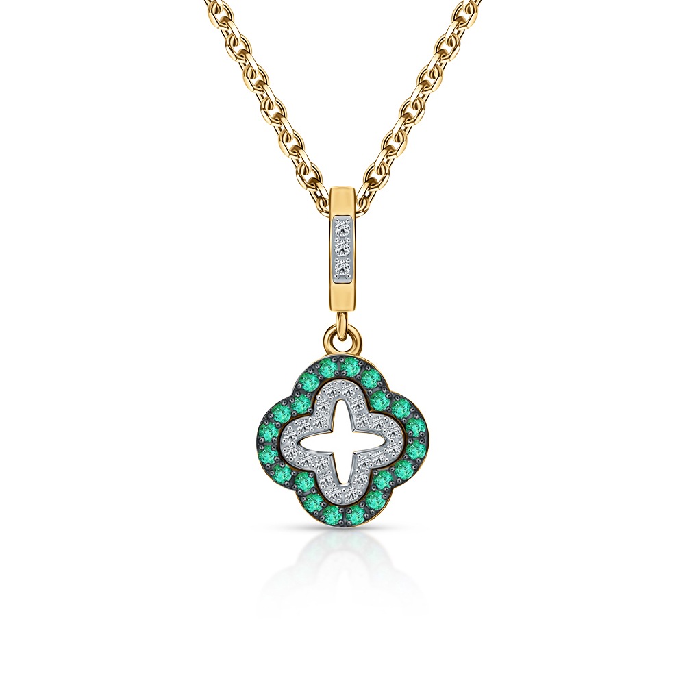 Золотая подвеска с бриллиантами природными и изумрудами природными
