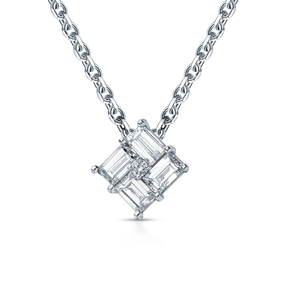 • Подвеска с 4 бриллиантами выращенными, 0.35 карат, огранка багет 33 грани, цвет 3, чистота 5, тип огранки А;