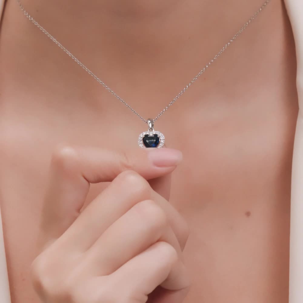 Глубокий синий цвет кулона в виде сердечка и обрамленное белыми фианитами ,красиво!