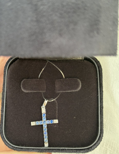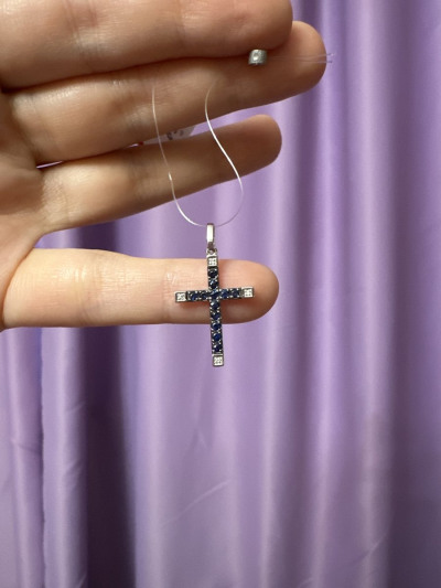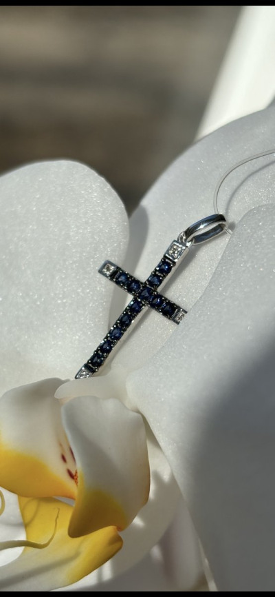 Стильное , дорогое украшение, крест. С сапфирами и бриллиантами. Благодарю за акции.