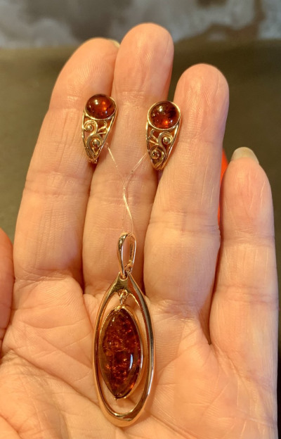 Серебряная подвеска с янтарями природными