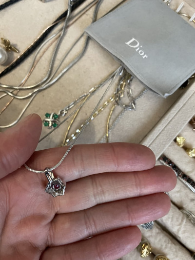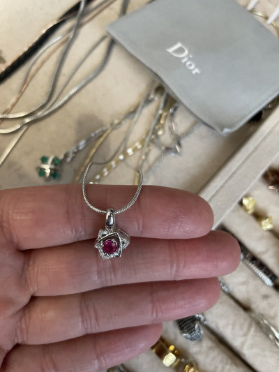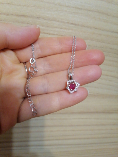Красивая не большая. Рубин натуральный , яркий. Можно снять с цепочки .