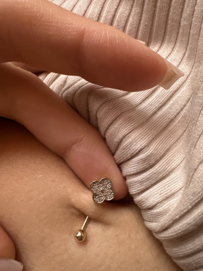 Очень хороший пирсинг из желтого золота 😻Смотрела из обычного красного , но эта понравилась больше ) Яркая , красивая, ножка средня , не короткая и не длинная 👍 В жизни сережка безумно красивая ! Девочки покупайте 🩵