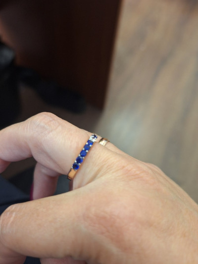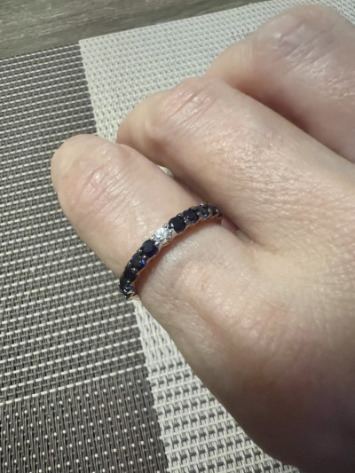 Кольцо классное, сапфиры не маленькие, в середине прозрачный сапфир блестит как бриллиант. Но не не комфортно на пальце, соседние пальчики чувствуют каждый камушек.