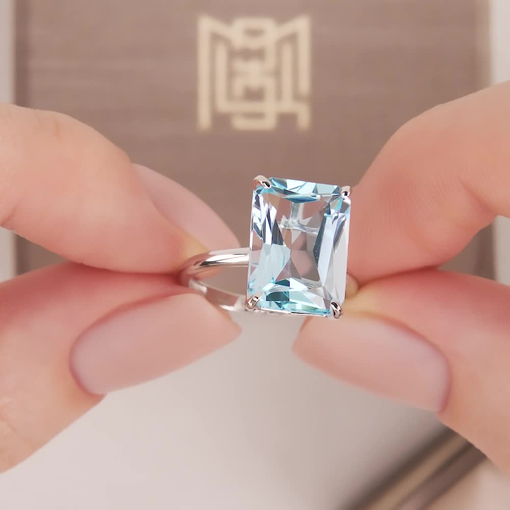 В редких случаях характеристики украшения или упаковка могут иметь отличия от представленных на фото или в описании.Кольцо с 1 топазом скай природным, 8.1 карат;