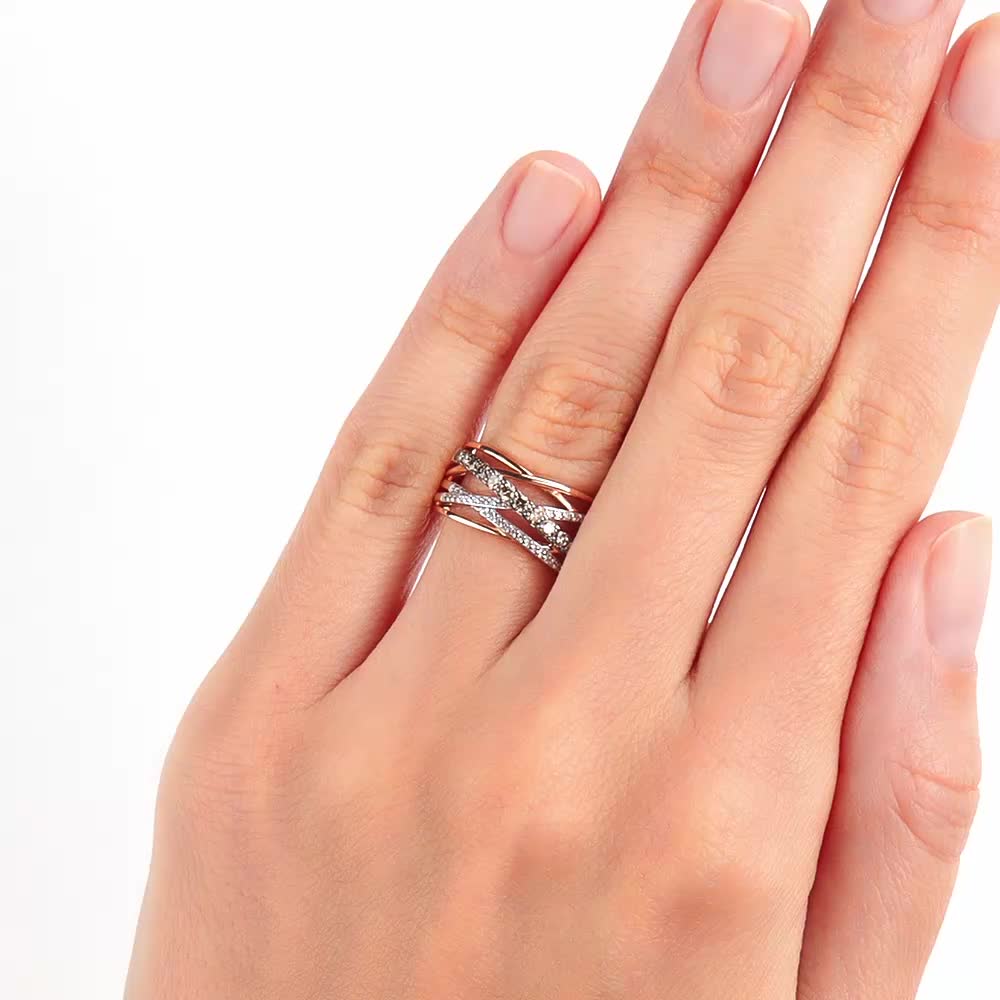 Золотое кольцо с бриллиантами и бриллиантами коньячными природными