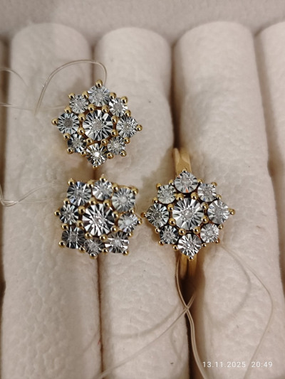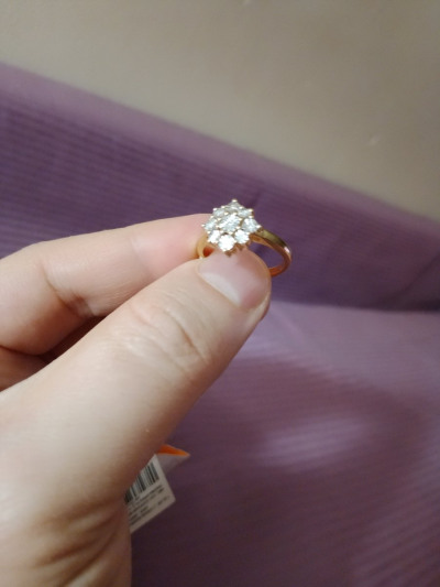 Красивое, удобное в носке. Блестит за счет огранки серебра вокруг. Особенно при рассеянном свете. Камушки маленькие. Как таковые не дают игру света. Чуть цепляет одежду.