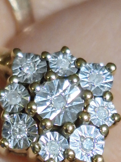 Потрясающий эффект: огромные бриллианты в солидной золотой оправе (хотя это крошечные бриллиантики на позолоченной серебряной основе)