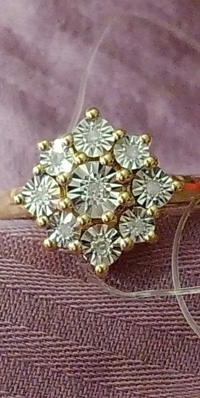 Кольцо с 9 бриллиантами природными, 0.04 карат, огранка круг 17 граней, цвет 2, чистота 4, тип огранки Б;