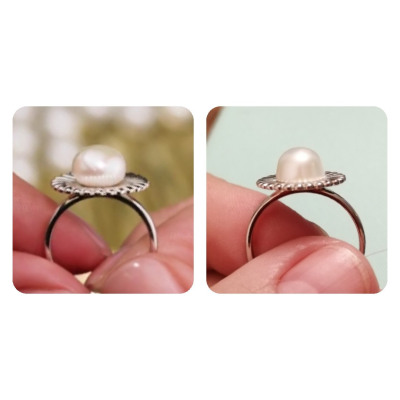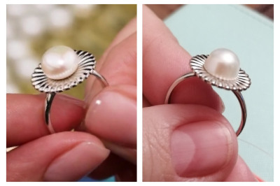 Само по себе кольцо красивое, но вот жемчуг совсем не такой как на фото и видео, он не круглый, а странный и некрасивый, за это снизила оценку.