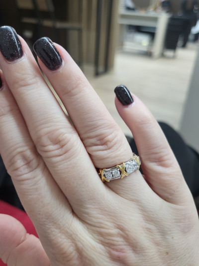 Очень красивое, и это не увидительно, т.к. оно идентично по дизайну кольцу Sixteen Stone by Tiffany, которое стоит как крыло самолета :) Не с первого раза получилось угадать с размером, к сожалению, но зато теперь у меня их 2 😄 Доставка комфортная, милейшие коробочки с бантиками и достойная упаковка.