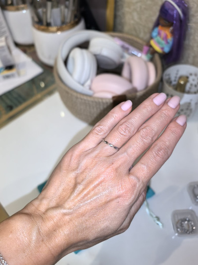 Колечко интересное, привликает внимание, миниатюрное и все-таки довольно плотное. На первый взгляд в руках никакое а на пальце сразу по другому смотрится и все-таки довольно нежное и для взрослого подойдёт.