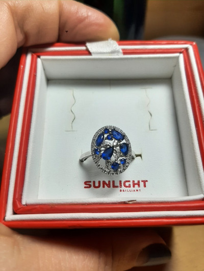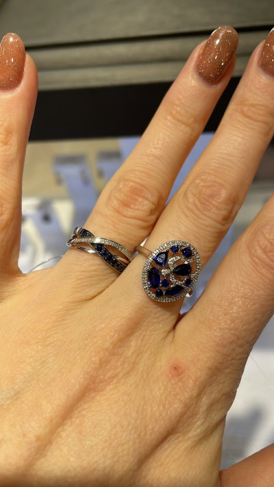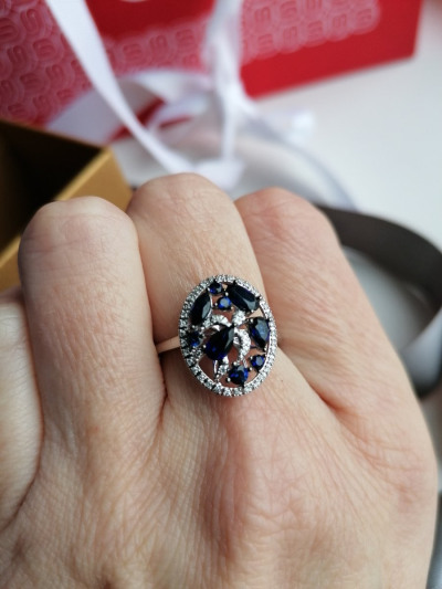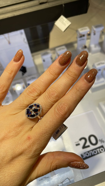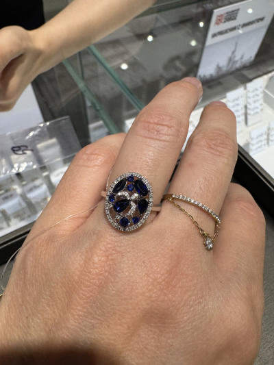 Золотое кольцо с бриллиантами природными и сапфирами выращенными