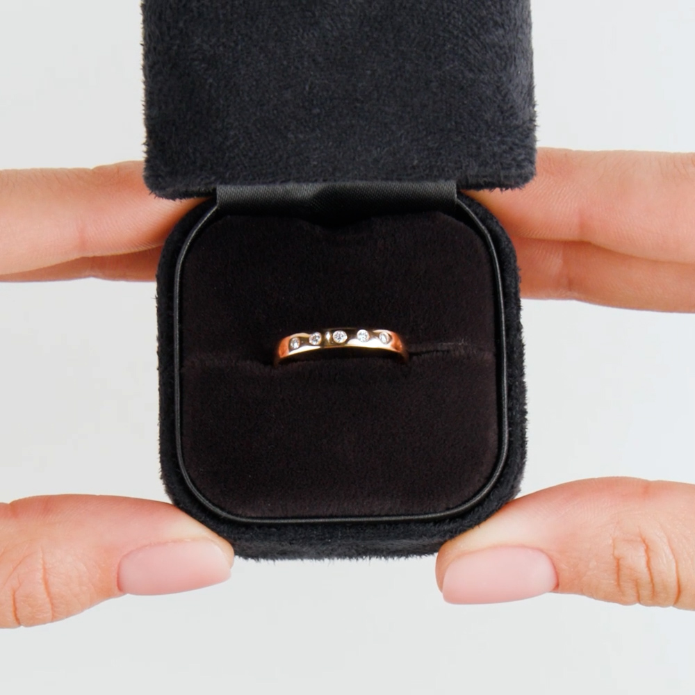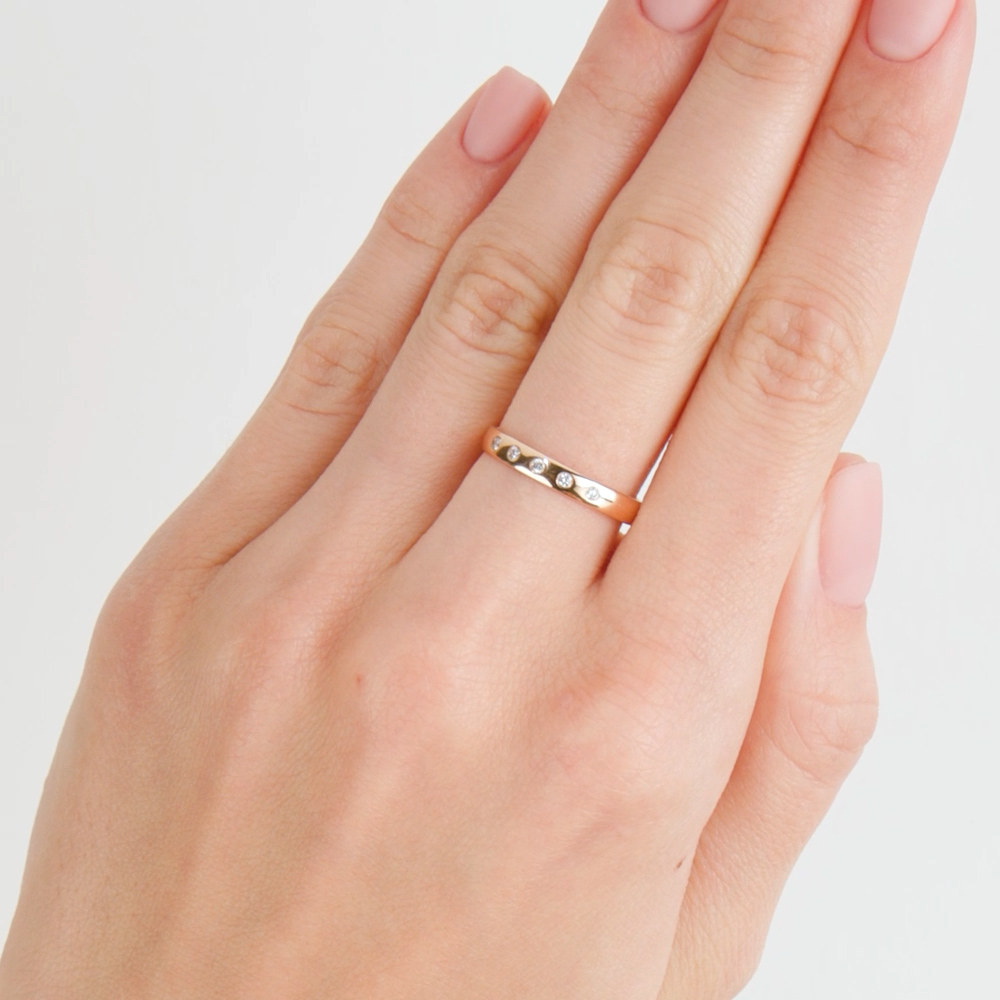 Красивое, аккуратное, сверкают камни. Нравится, что камни утоплены, не цепляются. Кольцо легкое, не мешает. Довольна выбором 👍