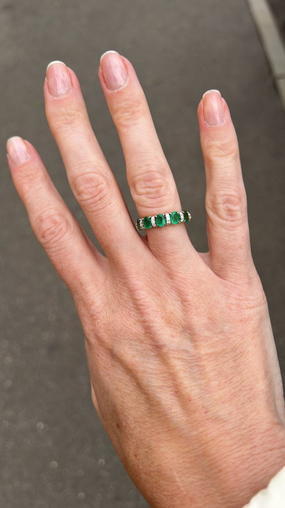 Это достойное кольцо! Изумруды крупные, удобно в носке: не мешает между пальцами. На руке очень красиво. Привлекает взгляды.