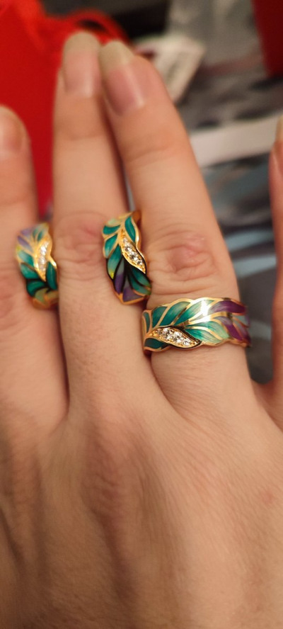 Покупала комплектом, прекрасное качество,быстрая доставка. Смотрится шикарно. В подарок положили, коробку для украшений. В колечке ещё есть прорези на сквозь фигурные, мне очень понравилось.