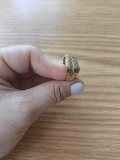Гладкое, оригинальное колечко. Больше 2 гр. Смотрится, как если бы в нем было больше вес. Достаточно объемное.