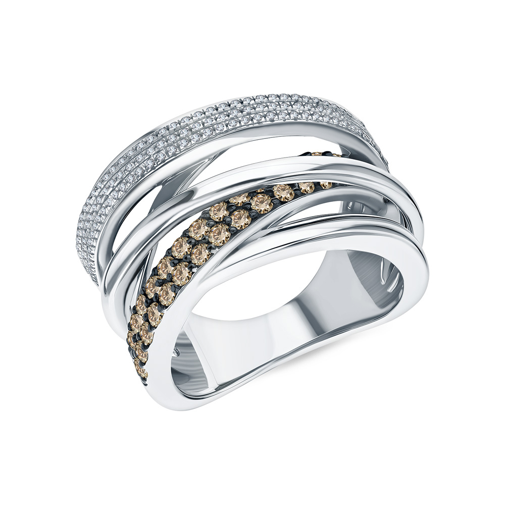Кольцо с 13 бриллиантами коньячными, 0.2 карат, огранка круг 57 граней, цвет 7, чистота 7, тип огранки А;