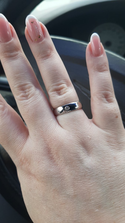 Заказывала два кольца на выбор, от одного отказалась меньше грамм и бриллиант меньше а стоимость больше. А в этом кольце приличный бриллиант и вес больше заявленного 9,29 . Комфортная посадка меня порадовала . Кольцо просто мечта !!! Цвет металла более благородный чем у белого золота