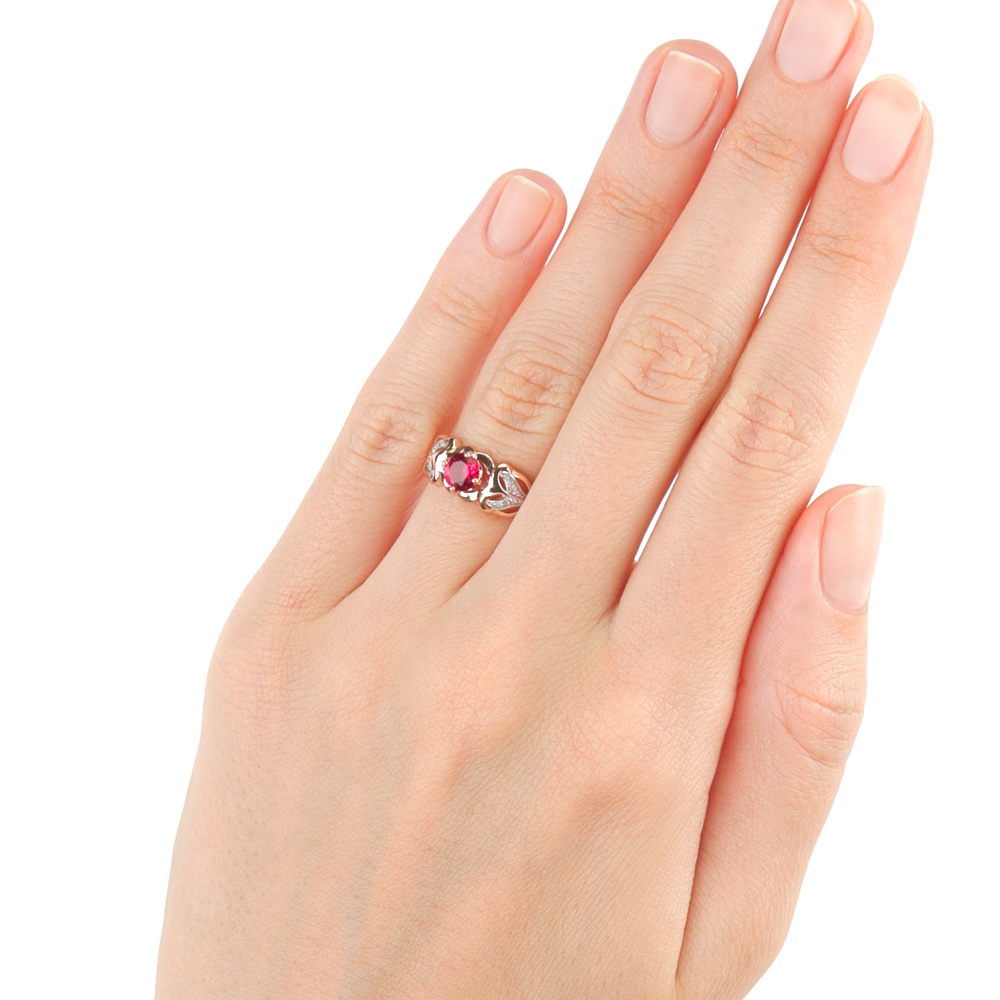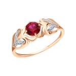 Золотое кольцо с бриллиантами природными и рубинами выращенными