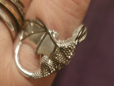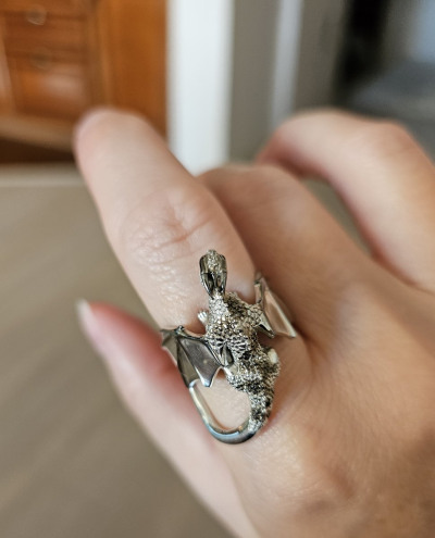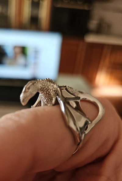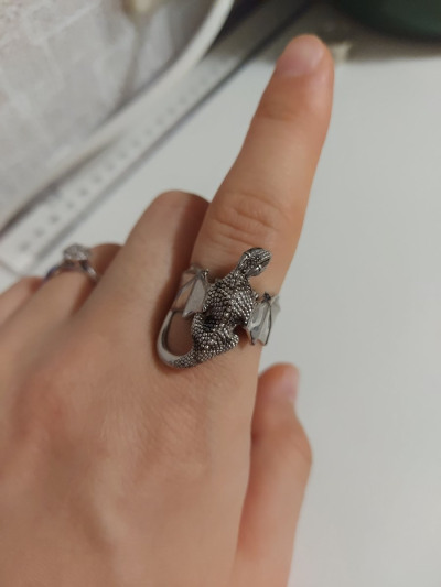 На полразмера взяла меньше(большемерит). И стало идеально. Много лет назад было серебряное кольцо с драконом. И вот снова те же чувства:)