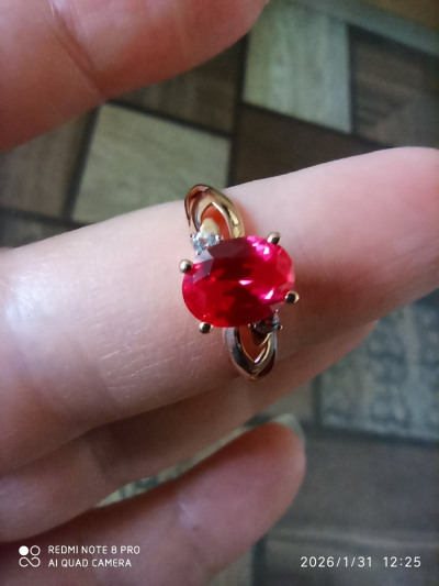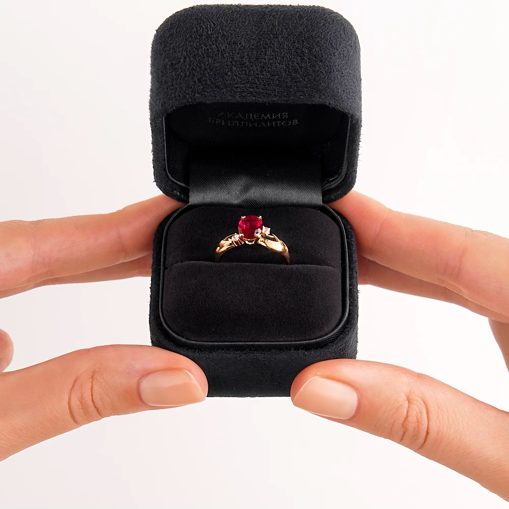 Кольцо с 1 рубином синтетическим, 1.37 карат;