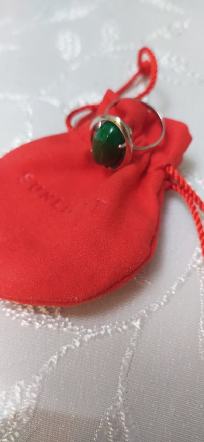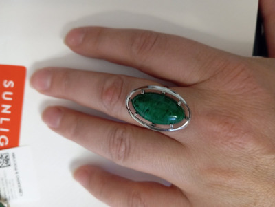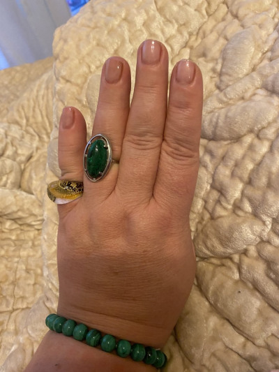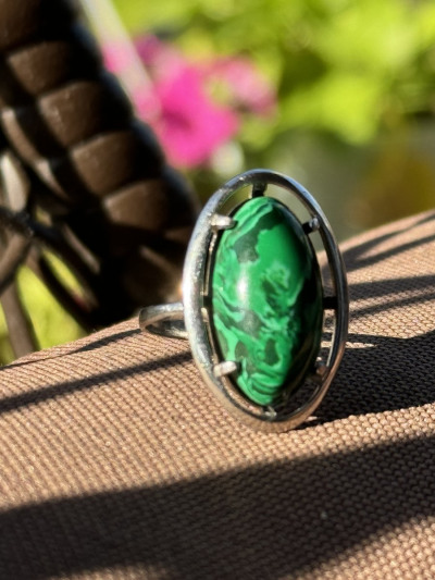 Колечко с синтетическим малахитом. Красивое крупное кольцо, смотрится стильно.