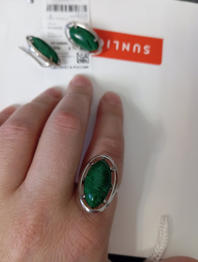 В целом, кольцо симпатичное, только узор на камне, у моего экземпляра, не самый удачный. Покупала в комплекте с сережками.