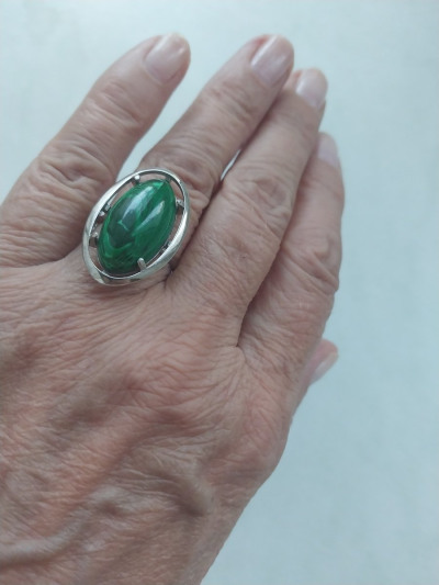 Серебряное кольцо с синтетическим малахитом