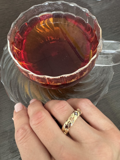 Оооочень красивое кольцо, на пальце сидит удобно , несмотря на то , что достаточно объемное . Мне из этого комплекта не хватает только подвеска , которое тоже собираюсь купить