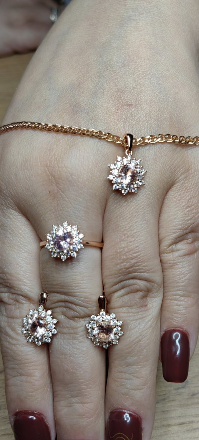 Ооочень красивое кольцо! С первого взгляда покорило моё сердце! Блестящие фианиты и нежный оттенок алпанита создают невероятный эффект — выглядит дорого и стильно. Позолота придаёт украшению особый шарм. В итоге не удержалась и купила весь комплект — теперь ношу с удовольствием каждый день! Спасибо магазину за такой шедевр! Рекомендую всем, кто ценит изысканность и качество!