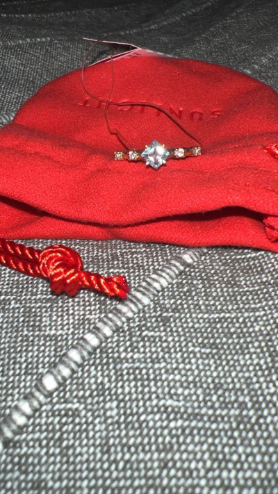 Очень нежное и красивое колечко с голубым топазом и фианитами. Очень рада,что приобрела его комплектом с серёжками. Спасибо!
