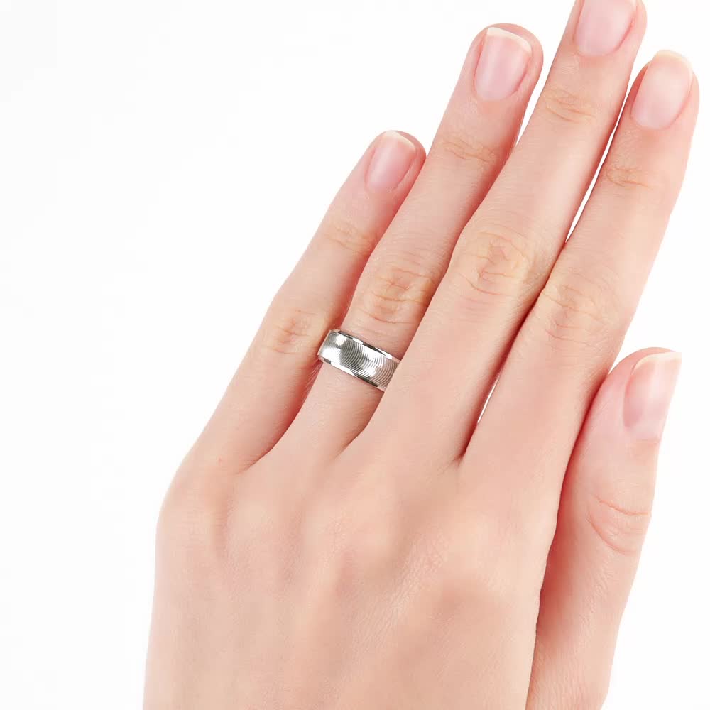Кольцо покупали мужу в качестве обручального. Носит три месяца, никаких изменений. Выглядит, как белое золото, не потемнело. Алмазные грани переливаются. Не тонкое, заметное. Очень давольна покупкой. Рекомендую. С серебряным браслетом очень красиво смотрится.