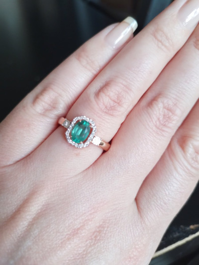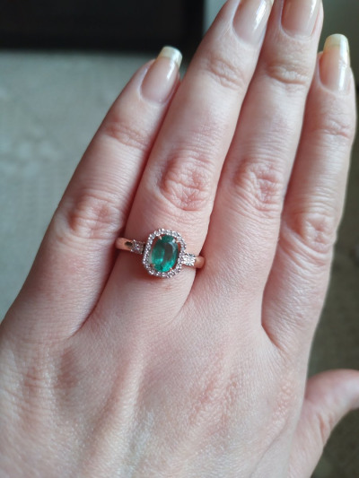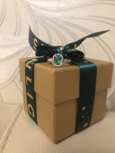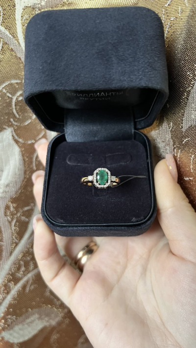 Муж подарил на др это прекрасное колечко, кольцо очень достойное, изумруд крупный в обрамлении бриллиантов смотрится дорого. Отдельное спасибо консультантом, т.к. моего размера не было, подобрали несколько вариантов и заказали доставку на следующий день, очень удобно!