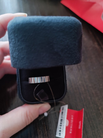 На свету очень красиво играет и переливается. На пальце выглядит заметно. Сначала ошиблась с размером: на свой 17 заказала 17,5, в итоге кольцо даже на палец не налезло... Оформила обмен через приложение, в магазине поменяли на 18,5. Подошло) так что лучше 100% примерить перед покупкой
