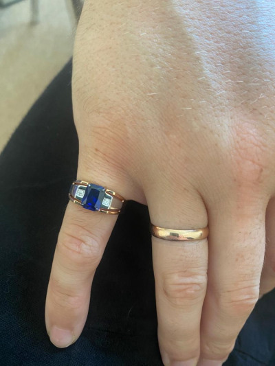 Золотое кольцо с бриллиантами природными и сапфирами выращенными