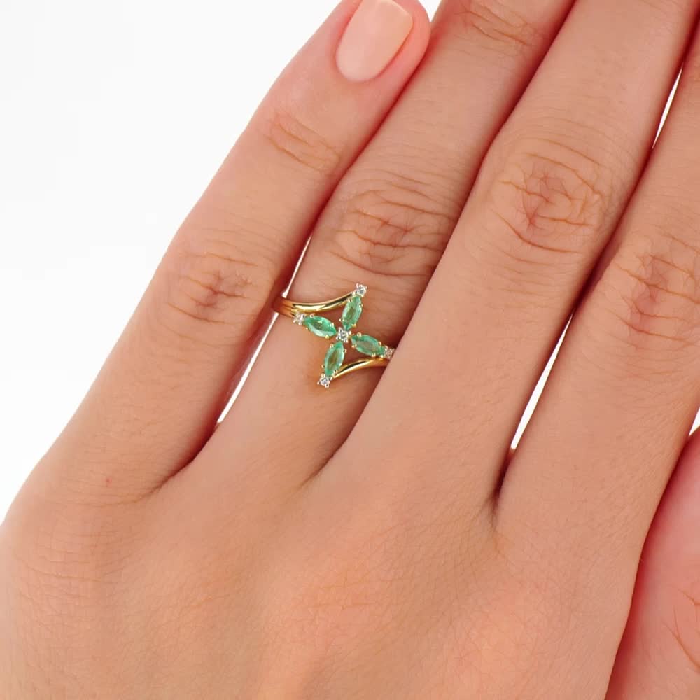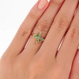 Золотое кольцо с бриллиантами природными и изумрудами природными