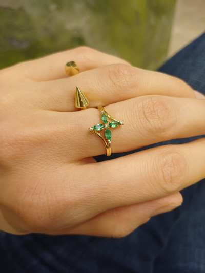 4 изумрудами природными, 0.27 карат, цвет 3, чистота 3, тип огранки Б;