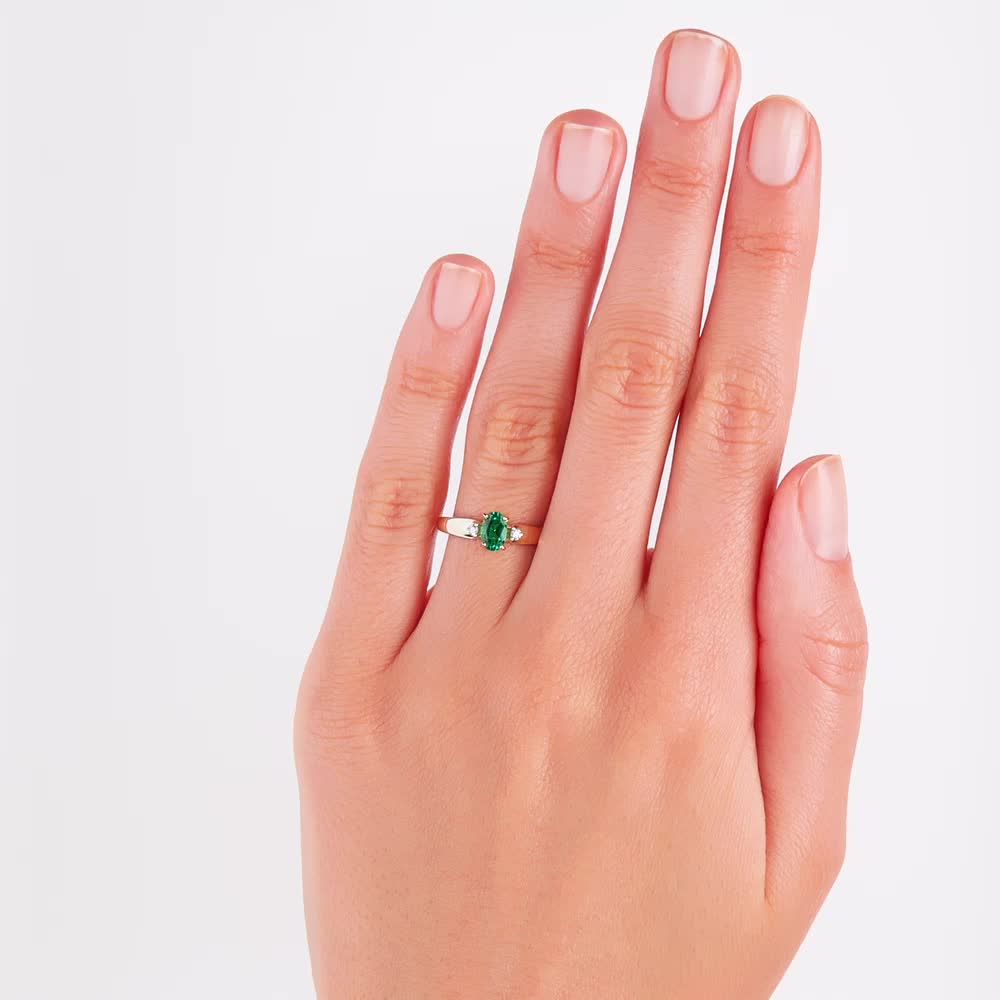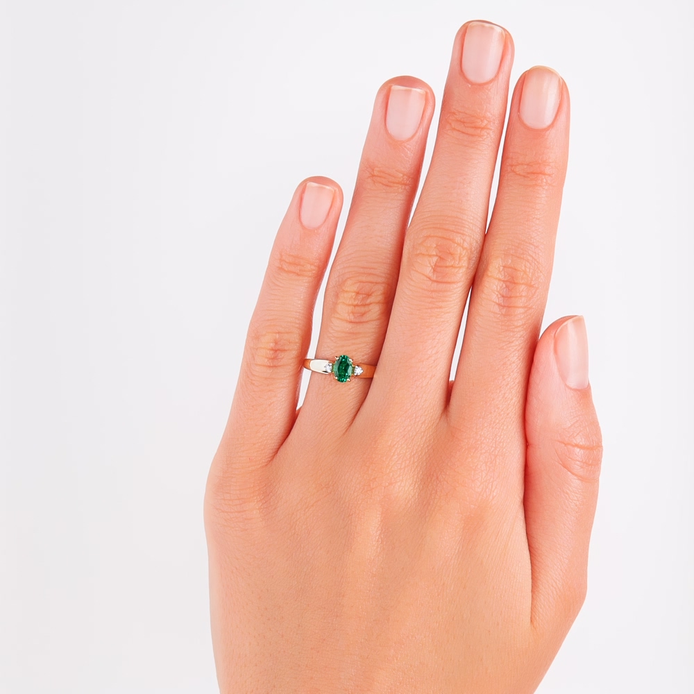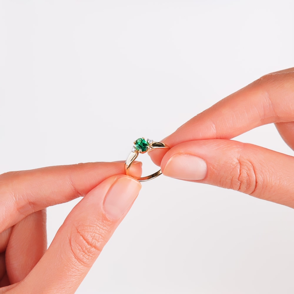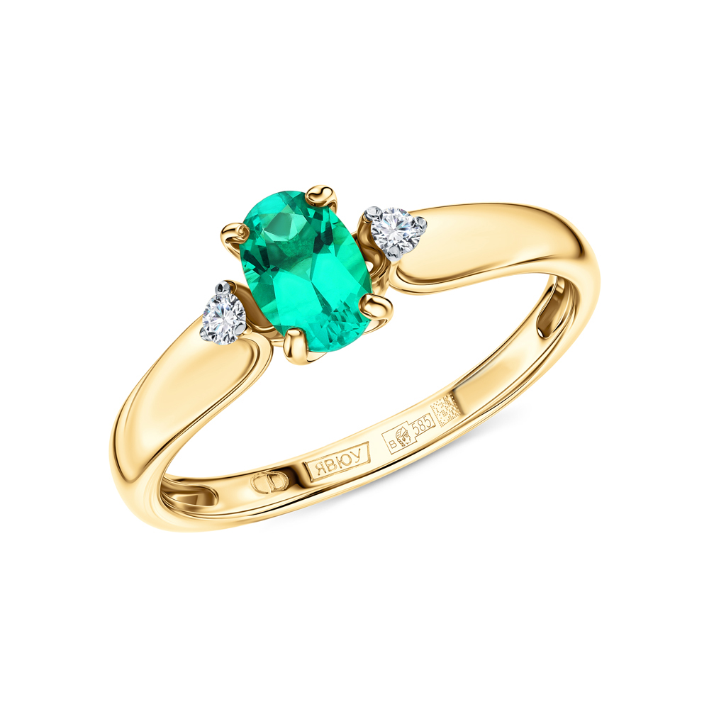 Золотое кольцо с бриллиантами выращенными и изумрудами выращенными