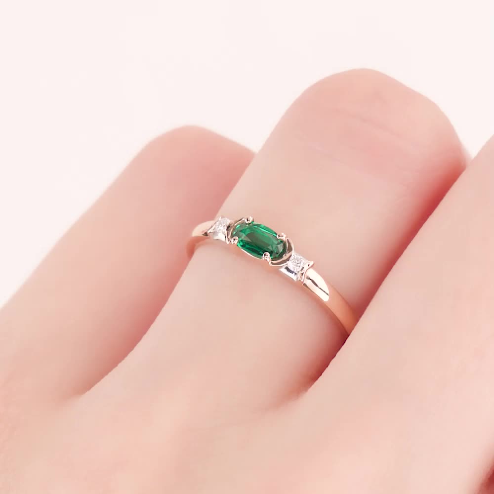 Золотое кольцо с бриллиантами природными и изумрудами гидротермальными