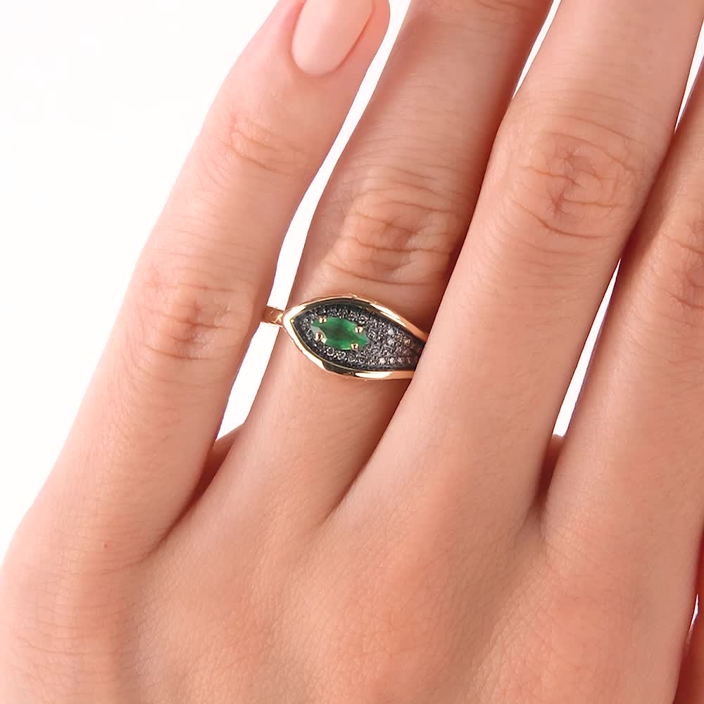 Золотое кольцо с бриллиантами и бриллиантами чёрными природными и изумрудами природными