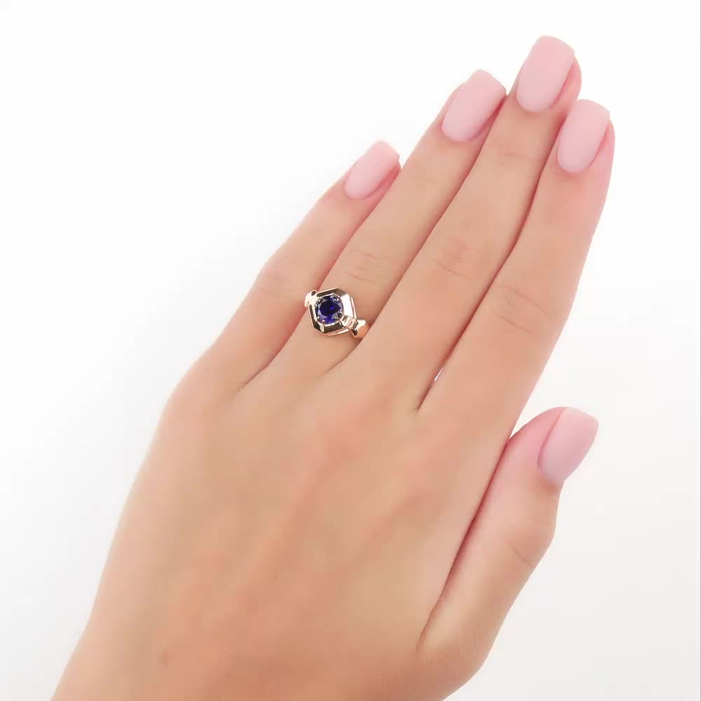 • Кольцо с 1 сапфиром синтетическим, 1.01 карат;