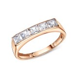 Кольцо с 5 фианитами бесцветными, тип огранки Б;