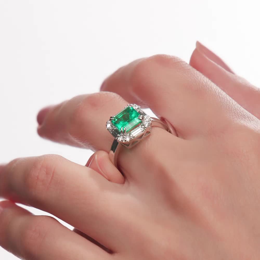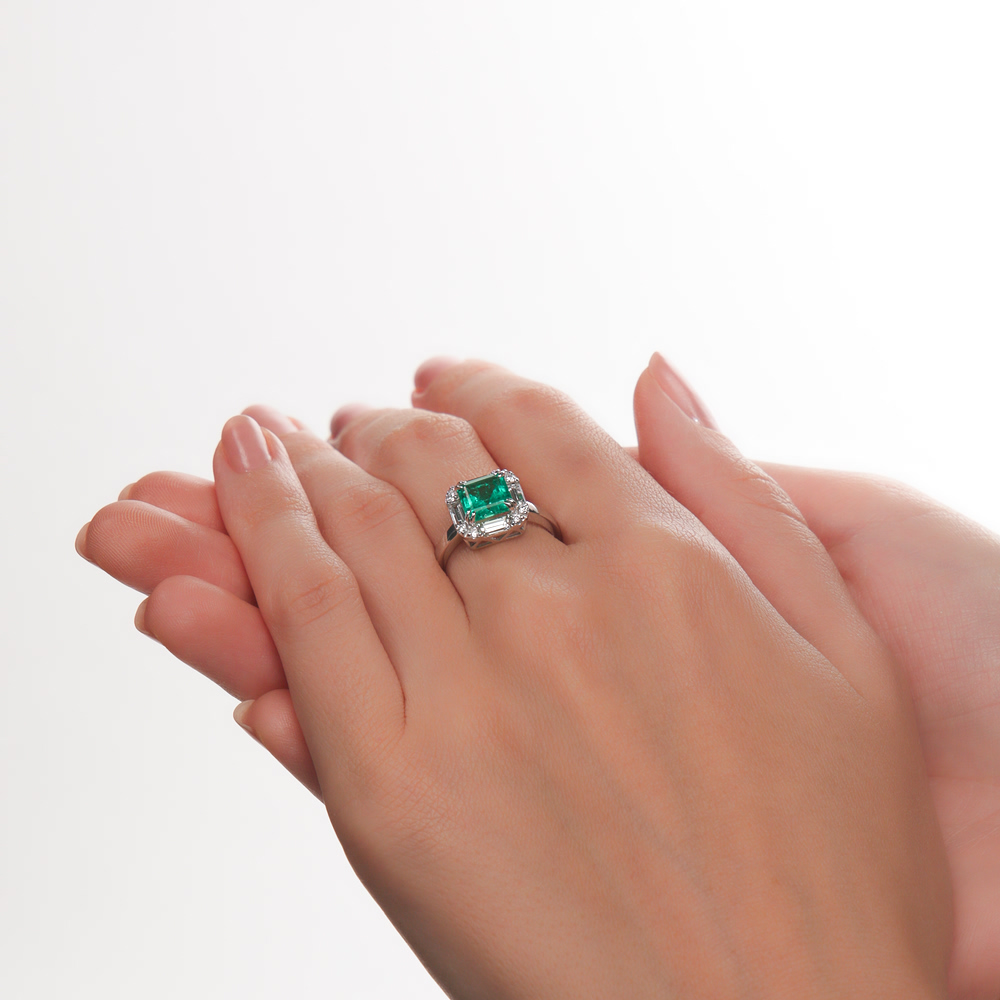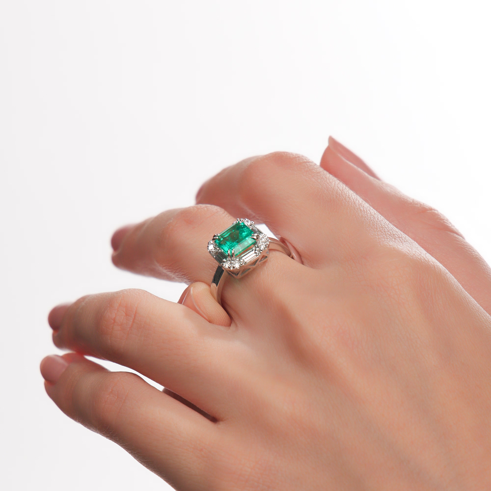 Кольцо с 1 изумрудом выращенным Колумбия, 1.46 карат;