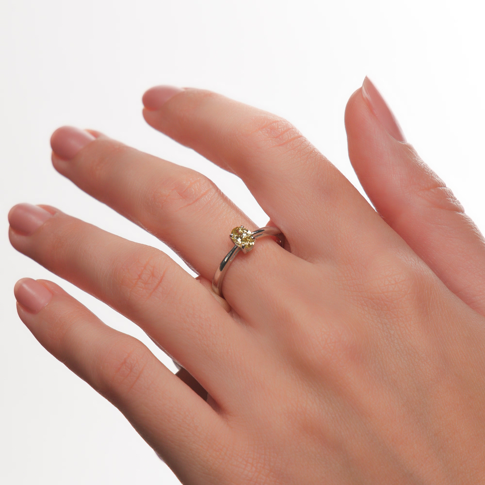 • Кольцо с 1 бриллиантом выращенным, 0.39 карат, огранка овал 57 граней, цвет Желтый, чистота 5, тип огранки А;