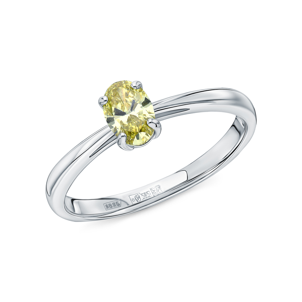 Кольцо с 1 бриллиантом выращенным, 0.39 карат, огранка овал 57 граней, цвет Желтый, чистота 5, тип огранки А;
