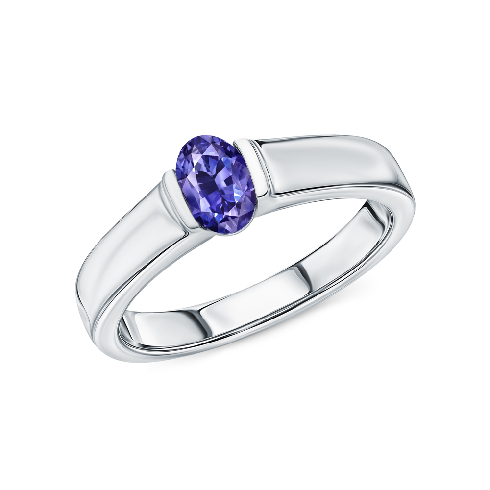 Кольцо с 1 танзанитом природным, 0.44 карат;