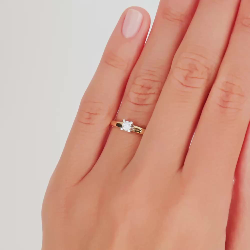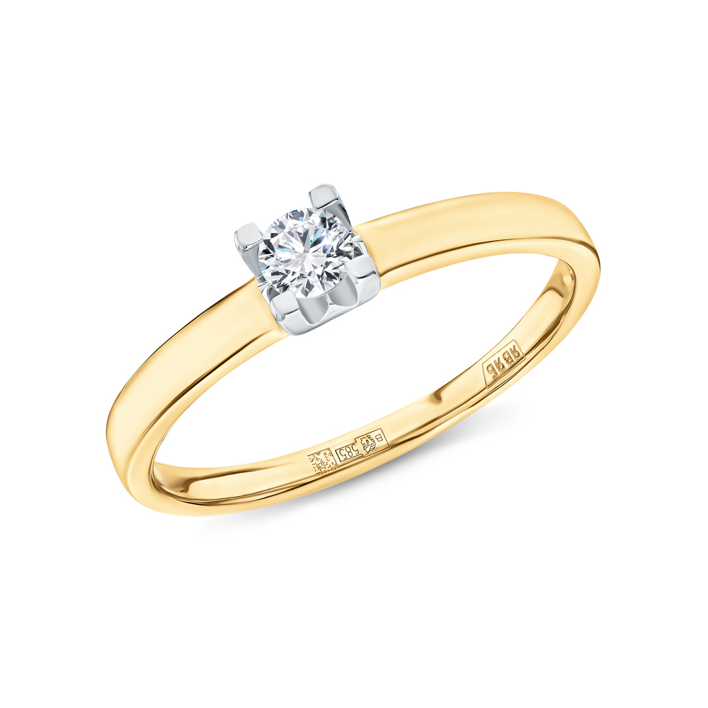 Кольцо с 1 бриллиантом природным, 0.12 карат, огранка круг 57 граней, цвет 3, чистота 6, тип огранки А;